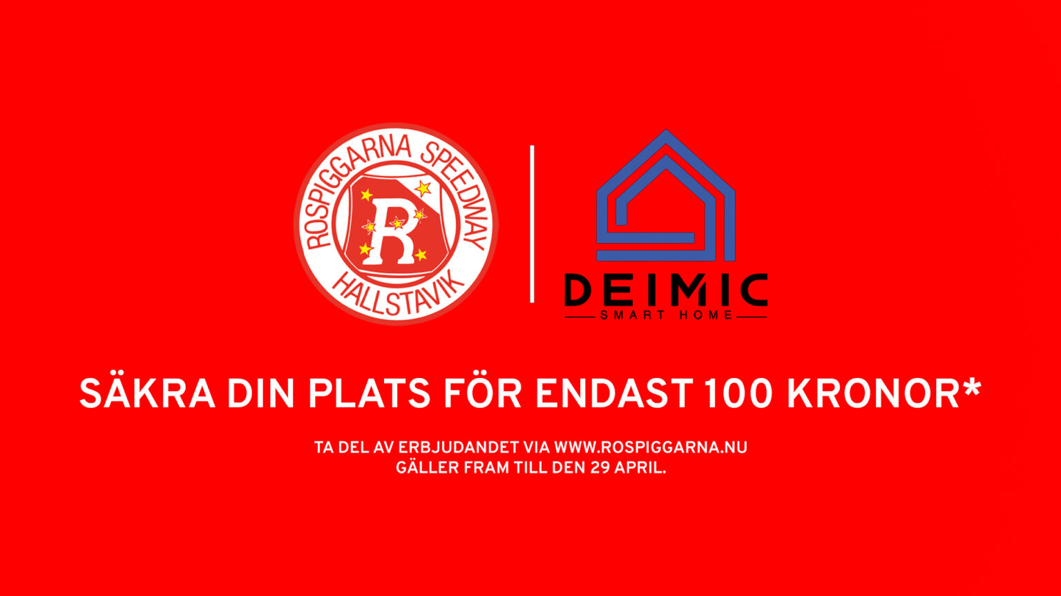 Stort tack till Deimic som gör detta möjligt. Var en del av folkfesten och stötta Roslagens speedwaystolthet till en seger!